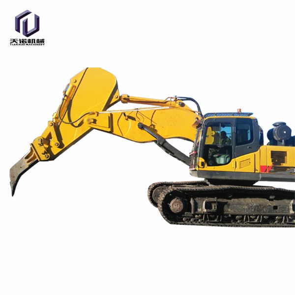 挖掘機巖石臂也稱鷹嘴臂、超級勾是風(fēng)化石、頁巖石、紅沙巖等挖掘破碎的利器,比傳統(tǒng)的破碎錘作業(yè),具有高 效率低損耗的好處,相比傳統(tǒng)的爆破作業(yè)而言作業(yè)效率更高,破碎成本更低,維護成本也很低。因為整體的臂進行縮短和內(nèi)部填充加重,像 45 噸左右的機型大小臂可達 16-17 噸,能夠很大程度上面增加了挖掘機的挖掘力度,能夠克服更加惡劣的工作環(huán)境。